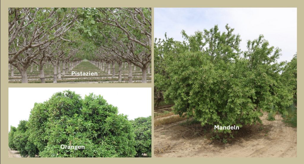 In Bakersfield erreichen wir das Central Valley, ein 600 Kilometer langer, fruchtbare Streifen, der auch als „Fruchtgarten Amerikas“ bezeichnet wird. Der südliche Teil – das San Joaquín Valley – zählt wegen des fruchtbaren Bodens zu den produktivsten Agrarregionen der Welt. In Kalifornien werden mehr als die Hälfte der Nüsse, des Gemüses und des Obstes der Vereinigten Staaten angebaut.
