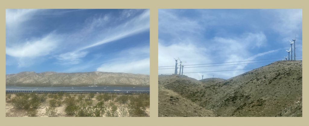 „Was ist denn das für ein See?“ Als wir näher kommen stellt sich raus, dass wir kein Wasser, sondern riesige Felder mit Solaranlagen vor uns haben. Später gesellt sich noch die Windkraft dazu. Alternative Energie in Kalifornien – auch in Texas haben wir viele Windkraftanlagen gesehen. Vielleicht gar nicht so sehr der Umwelt zuliebe, sondern weil es rentabel ist.