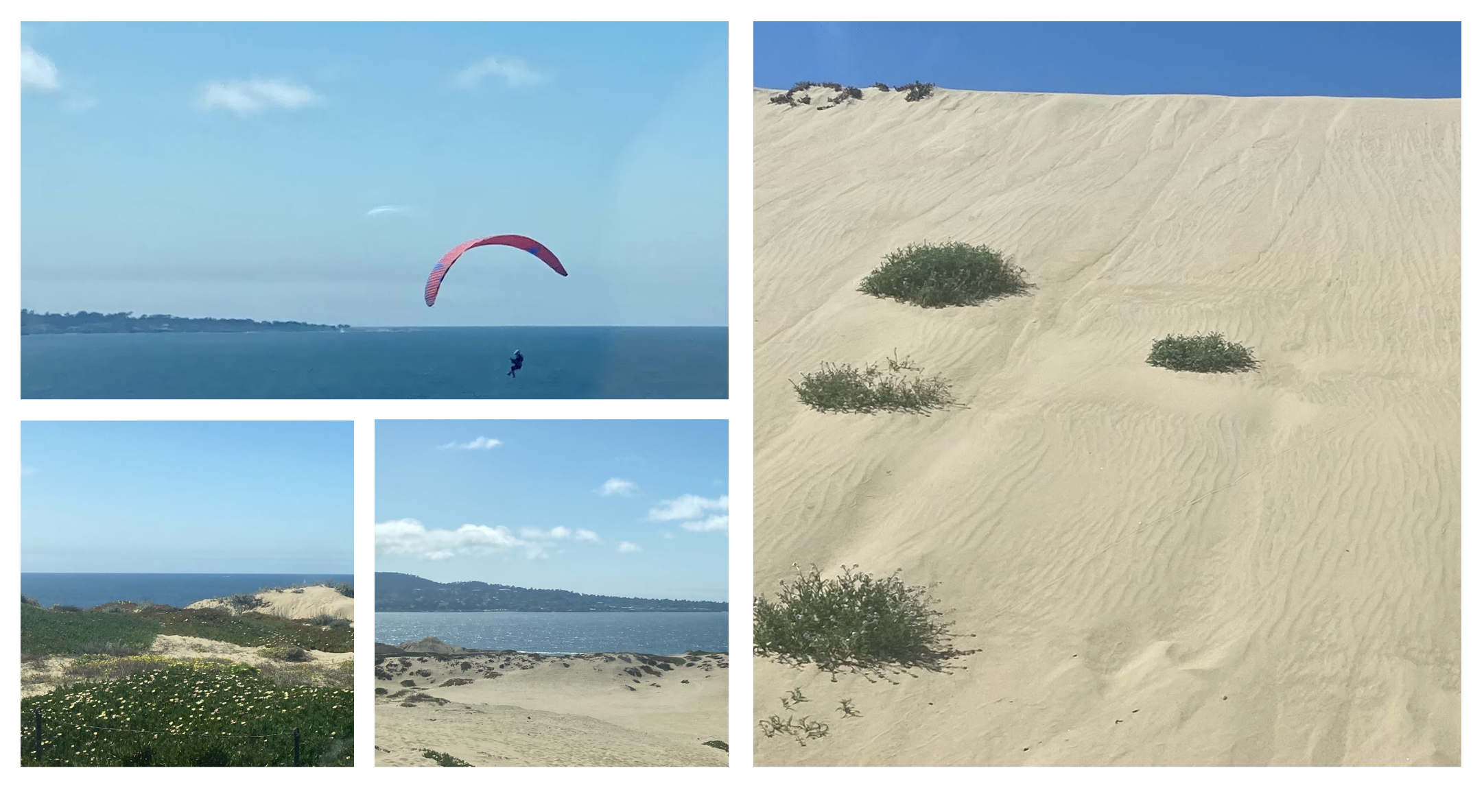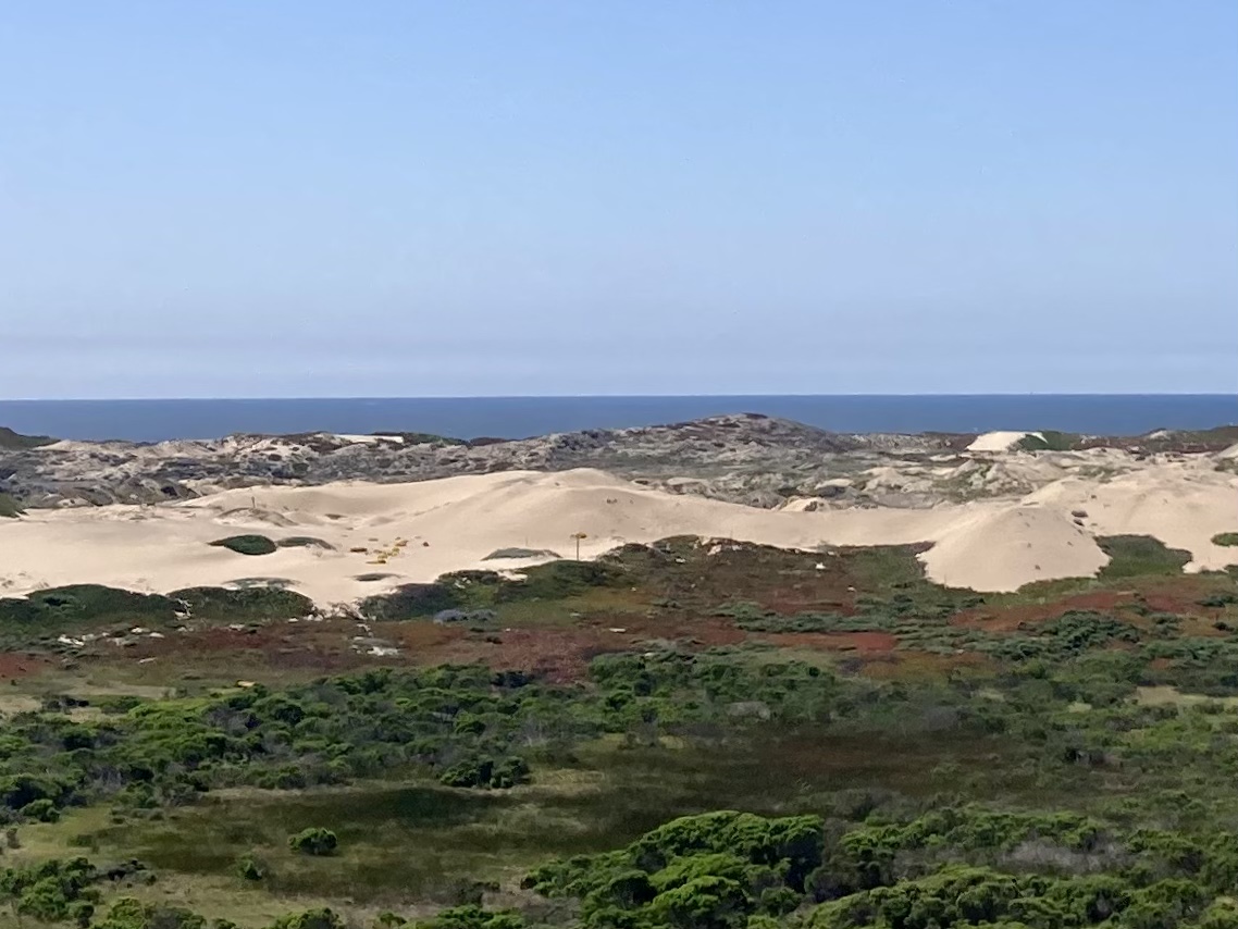 Ein kleiner Streifen zwar nur, aber immerhin. Es ist nun nicht mehr weit bis zum Meer in Monterey. Dünen ziehen sich bis zum Highway.