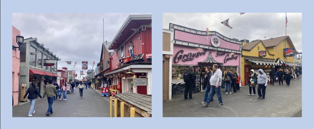 Ich freue mich, dass wir zweimal hier übernachten. Heute geht es noch ans Meer: eine halbe Stunde lang zu Fuß von unserem Motel aus zur Fisherman‘s Wharf.
