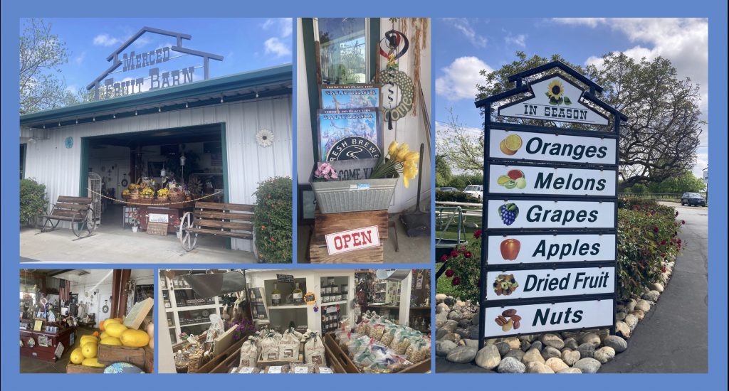 Die letzte Langstrecke führt uns zunächst wieder zwischen sanften grünen Hügeln hindurch, vorbei an riesigen Farmen mit friedlich weidenden Rindern. Perfektes Motiv für Countrymusik! Wie schön, dass wir uns Zeit lassen können. Bereits nach 60 Kilometer ist der erste Halt an der Merced Fruit Barn. Bestimmt gibt es auch Kaffee!