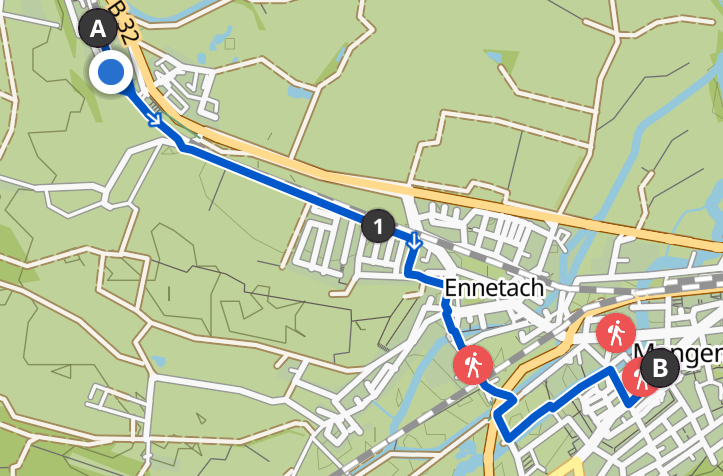 Meine Wanderapp Komoot will wohl meinen bescheidenen Angaben nicht trauen und schlägt mir erst einmal eine Route von fast 8 Kilometern über den bewaldeten Hipfelsberg vor. Ich kann der Versuchung widerstehen und verzichte. Möglichst direkt, möglichst einfach, möglichst entspannt: Das sind heute meine Devisen und sie bekommen mir gut.