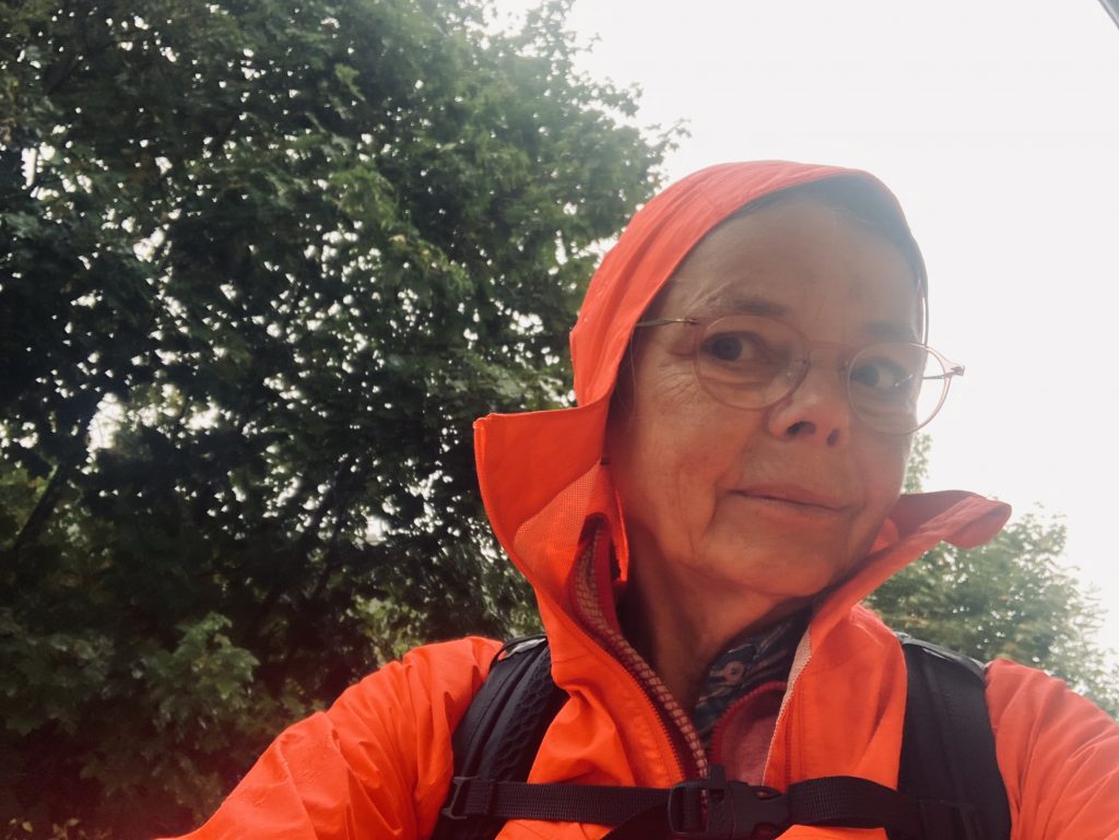 Nach zwei Stunden, ungefähr der Hälfte meines Weges, bin ich schon wieder etwas irritiert. Was hat sich verändert? Oh, es klopft nur noch ganz leicht auf meine Kapuze. Später hört der Regen ganz auf, entgegen aller Prognosen.