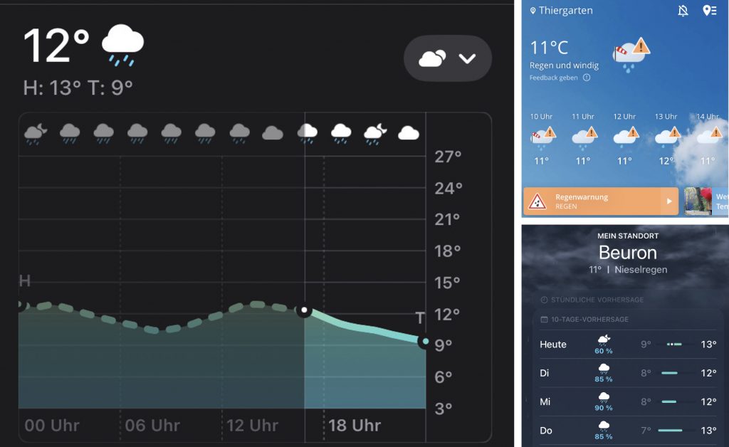 Wirklich kein Hindernis? Mir kommen Zweifel. Egal welche Wetterapp, egal ob morgen oder übermorgen: Das schöne Wetter ist Vergangenheit, Regen dominiert!