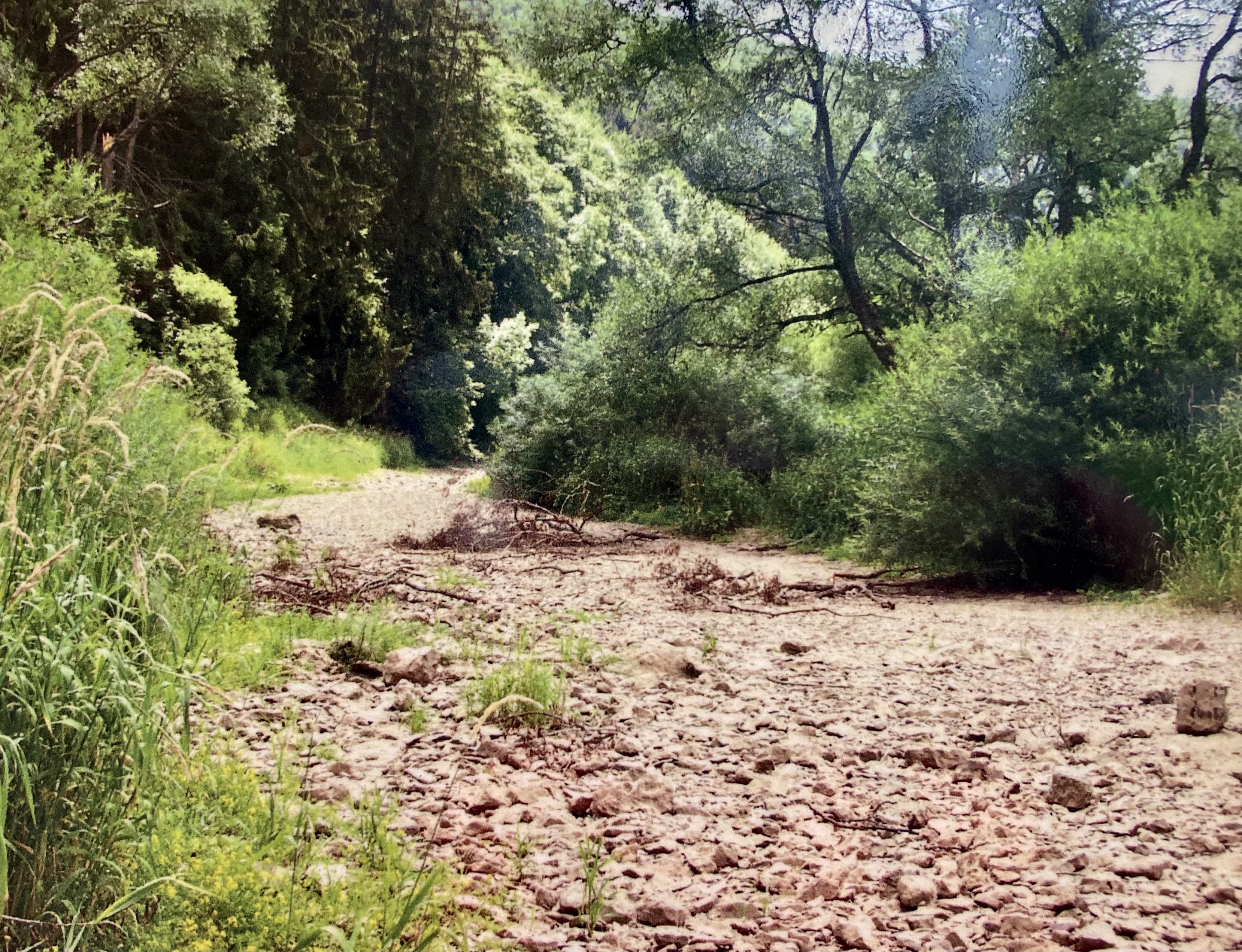 Aber der Pfad entlang der Versickerung, der ist für mich das heutige Highlight. Ich laufe direkt neben dem rauschenden Fluss, ganz alleine, fast andächtig.
