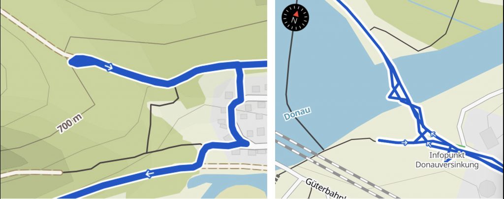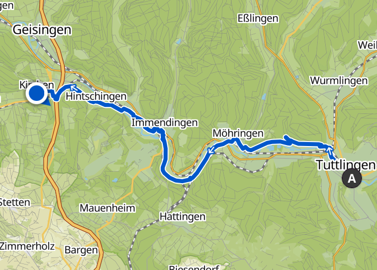 Mit meiner App Komoot komme ich normalerweise gut zurecht, wenn ich aufpasse. Heute werde ich allerdings zwei Mal in die Irre geführt. Einmal wird mir im Wald vor Möhringen ein Weg angezeigt, den es nicht gibt, und in Immendingen ist eine Unterführung unauffindbar, angeblich wegen Hochwassers. In beiden Fällen löst sich das Problem auf undramatische Weise. Glück, das muss nicht immer so sein.