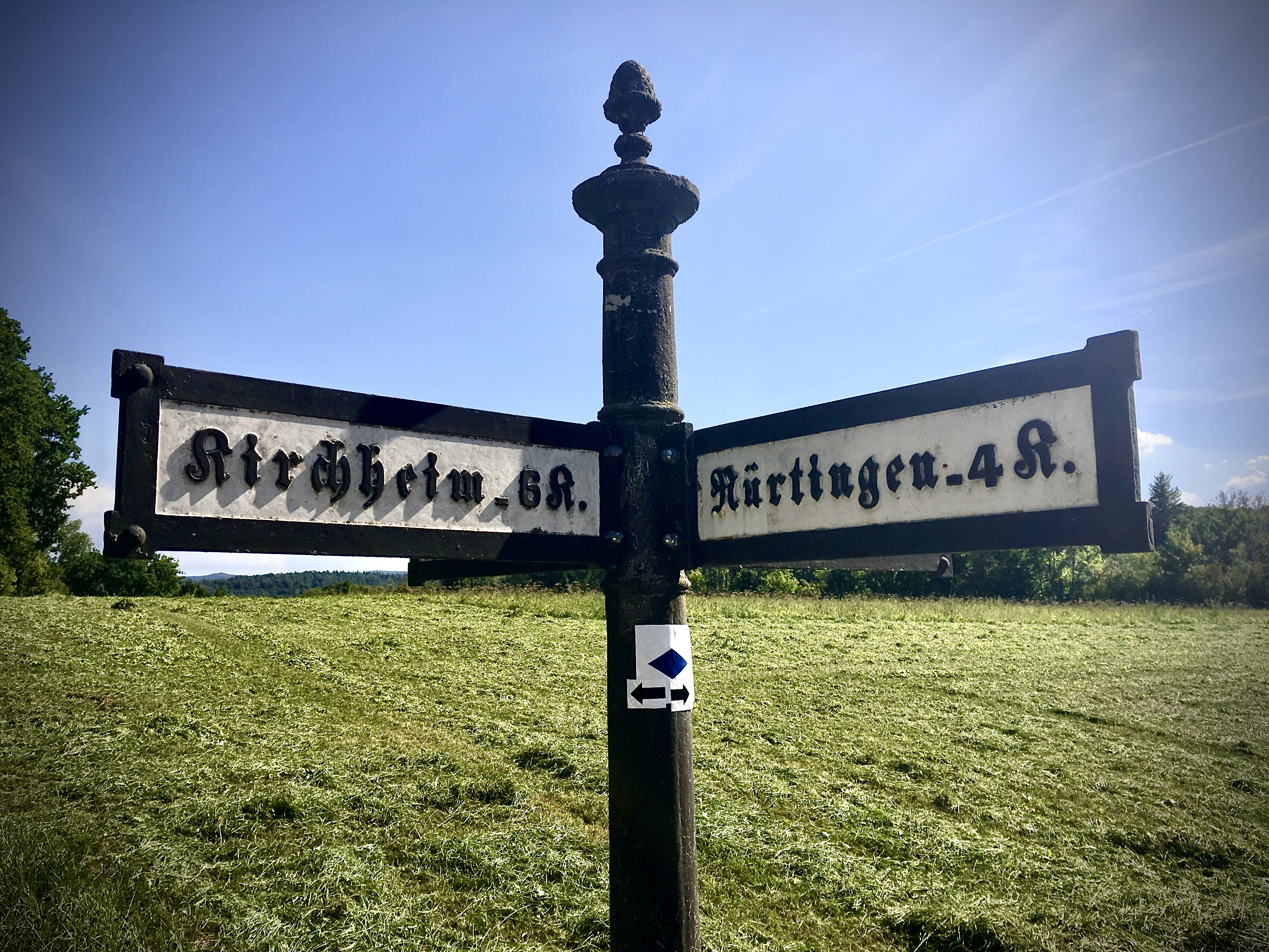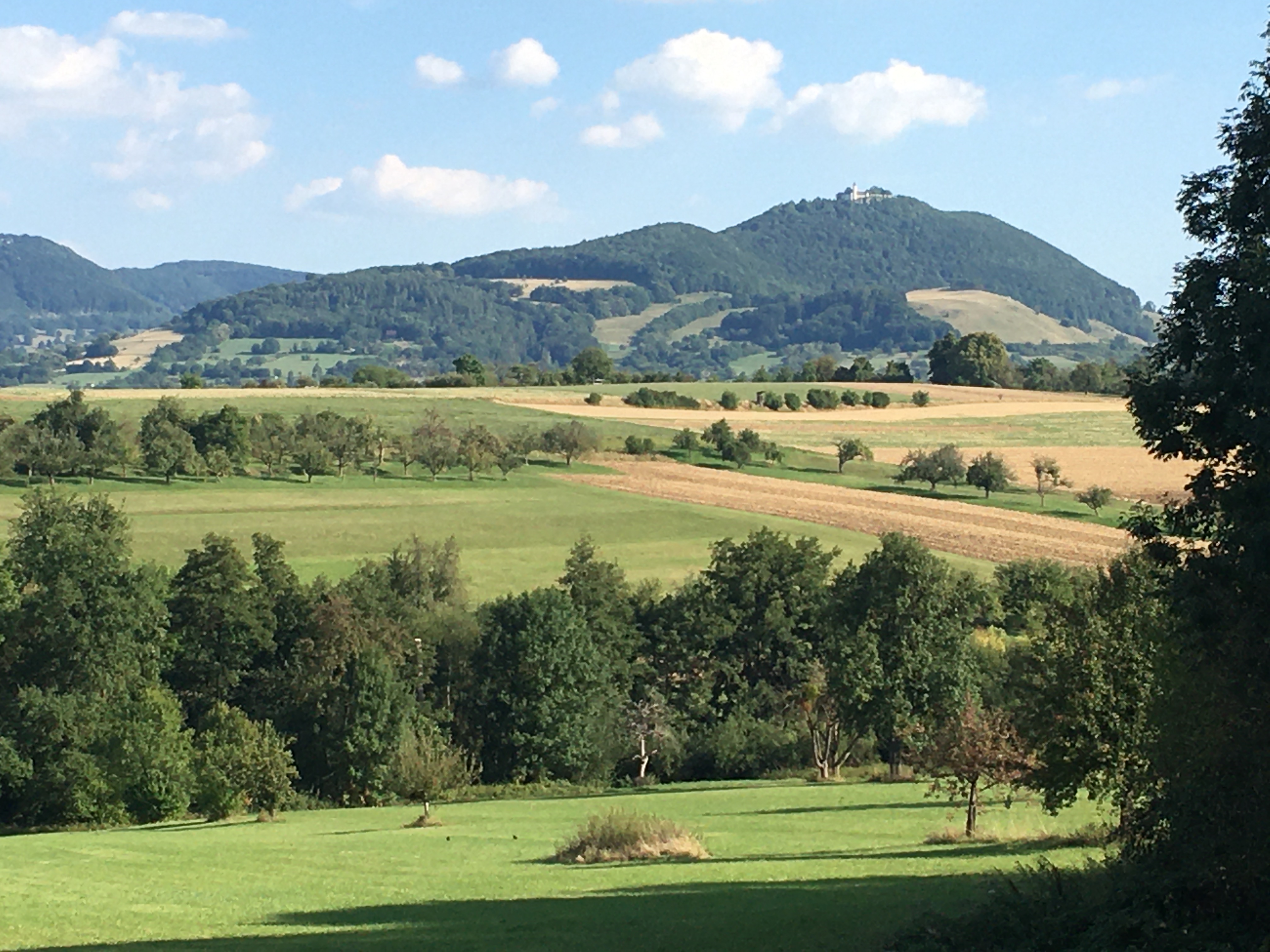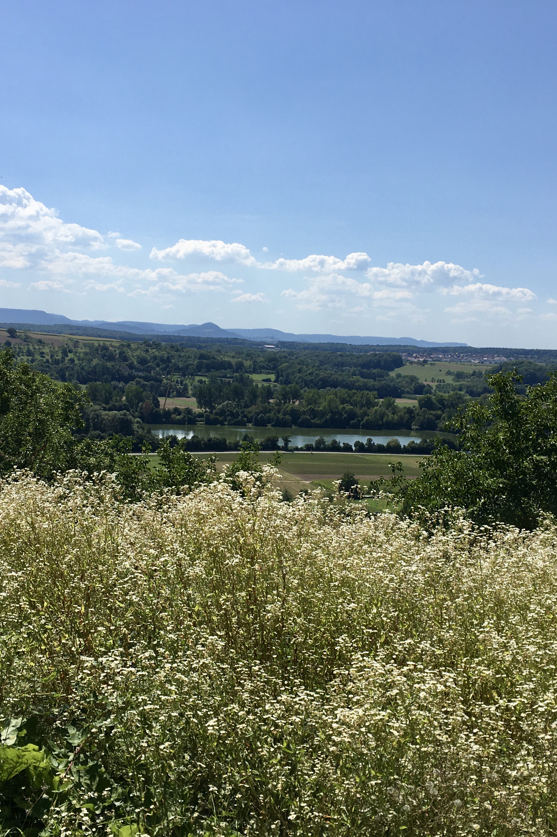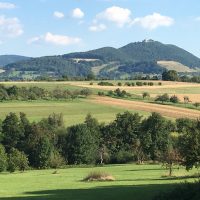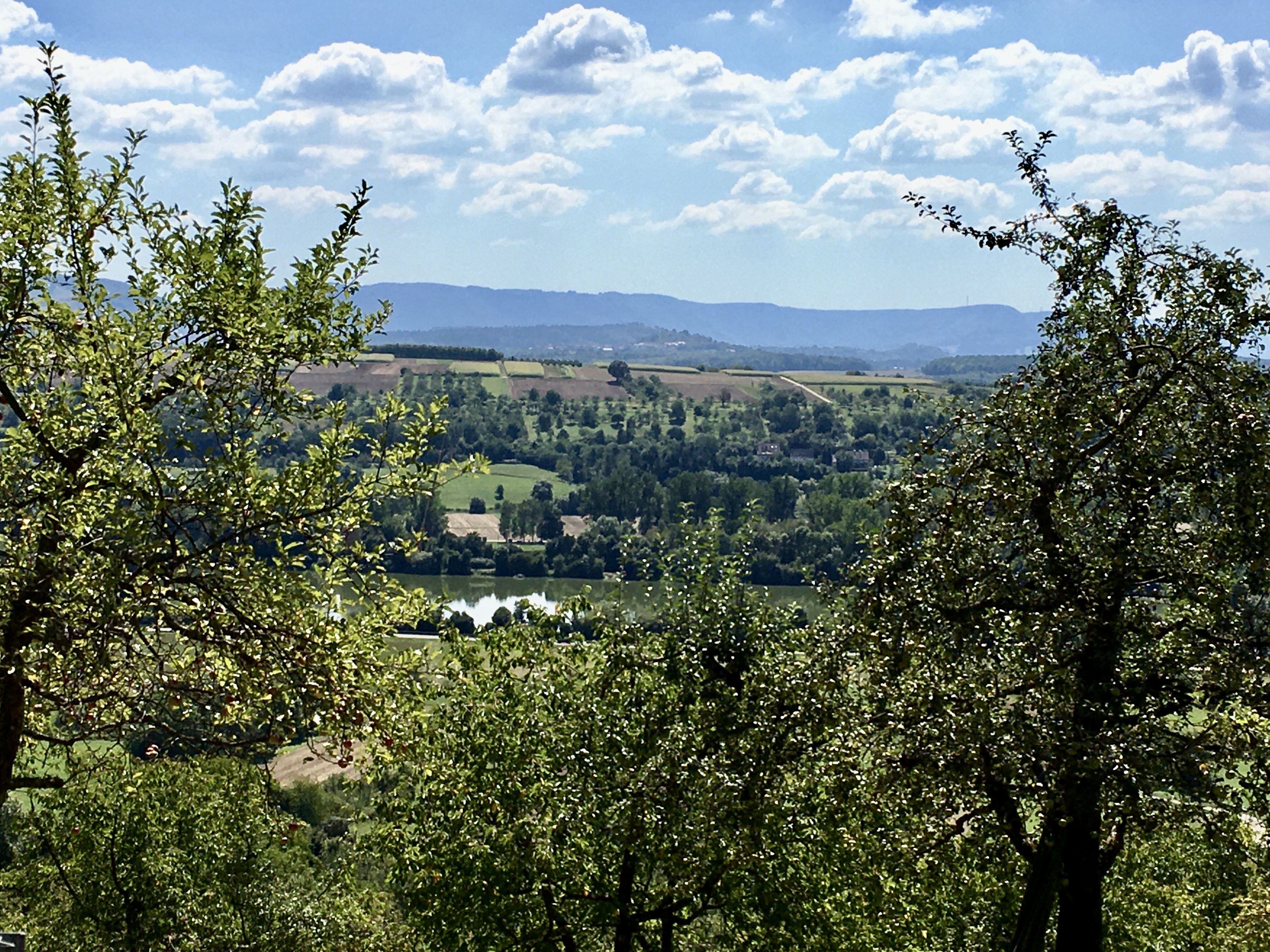 Ich laufe eine Zeit lang durch das Aichtal. Dann ist in der Ferne der Neufen und auch schon die Teck zu sehen und auch eine UFO-Landesration. (Konrad ist da anderer Meinung und glaubt an ein VOR- Drehfunkfeuer für den Flughafen. Statt Marsmännchen begegnen mir aber Rehe und Hasen.
