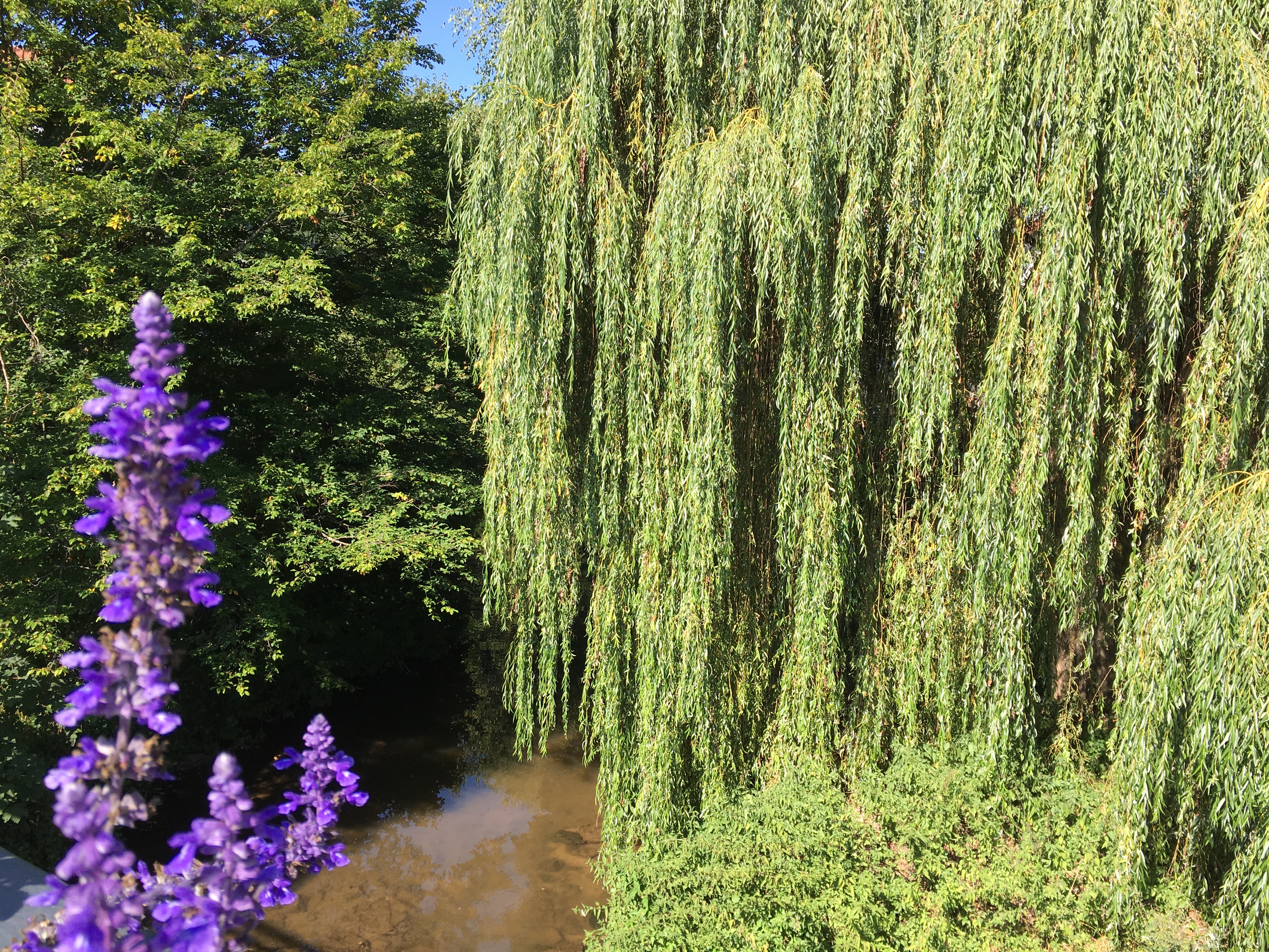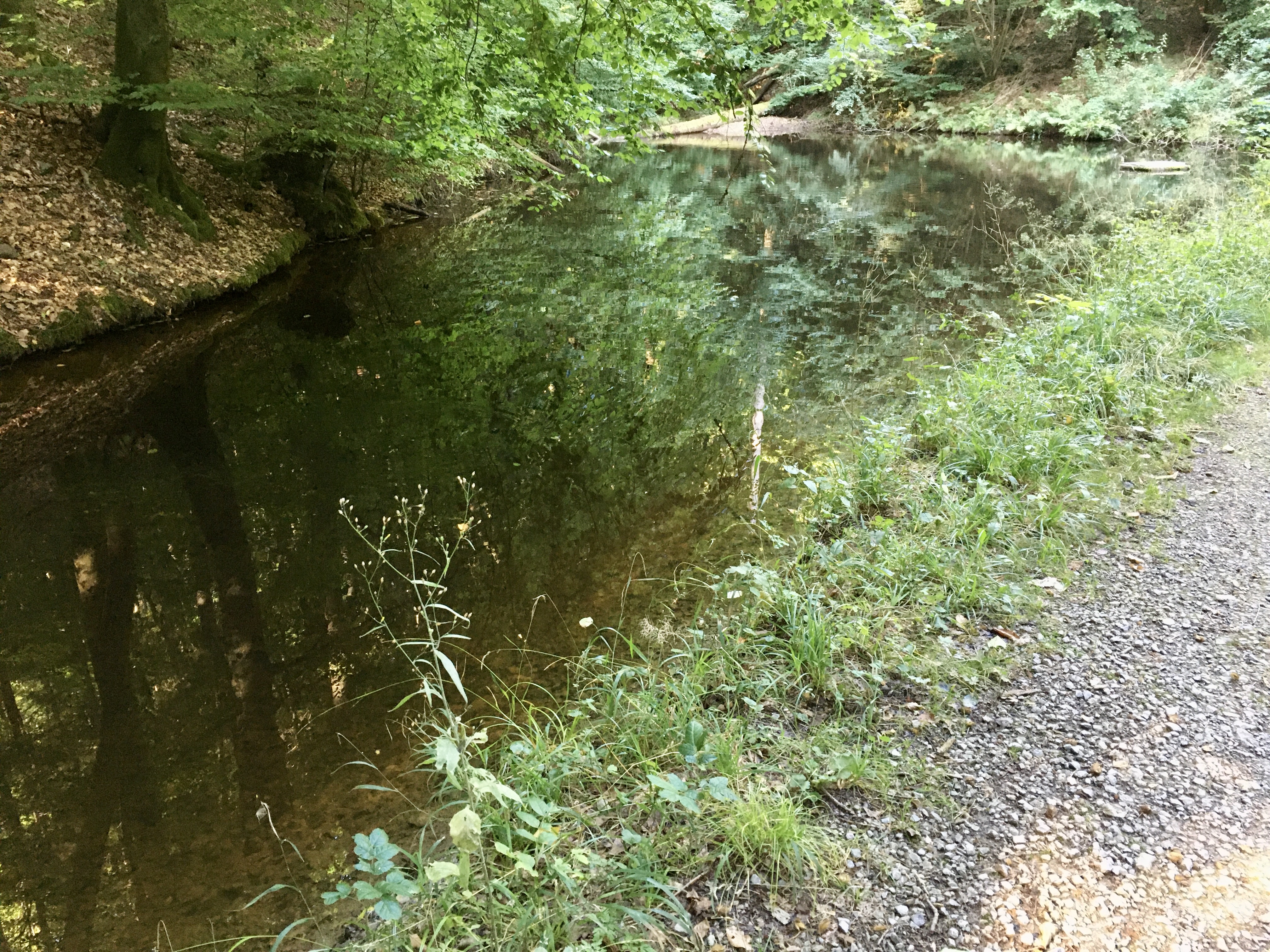 Ich bin schon 4,6 km gelaufen, zuversichtlich aber nicht mehr so euphorisch wie gestern. Das lag Gott sei Dank nicht an meiner körperlichen Befindlichkeit, sondern an der Tatsache, dass ich noch keinen Kaffee hatte. Mein Kopf war wie im Nebel. Trotzdem fühlte sich das Laufen entlang der Aich angenehm frisch an und ich nahm die Schönheit am Wegesrand wahr.