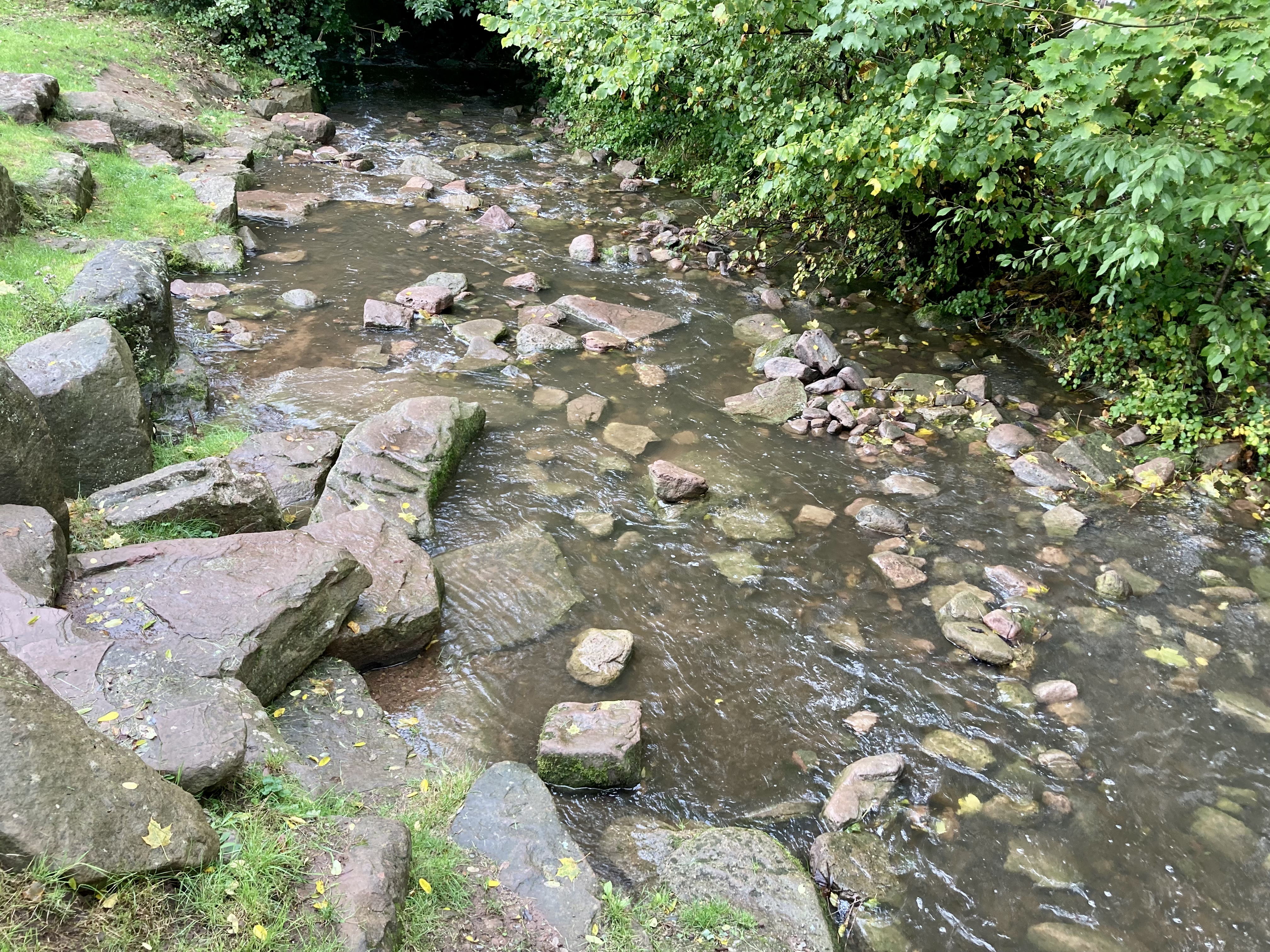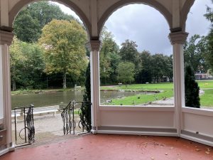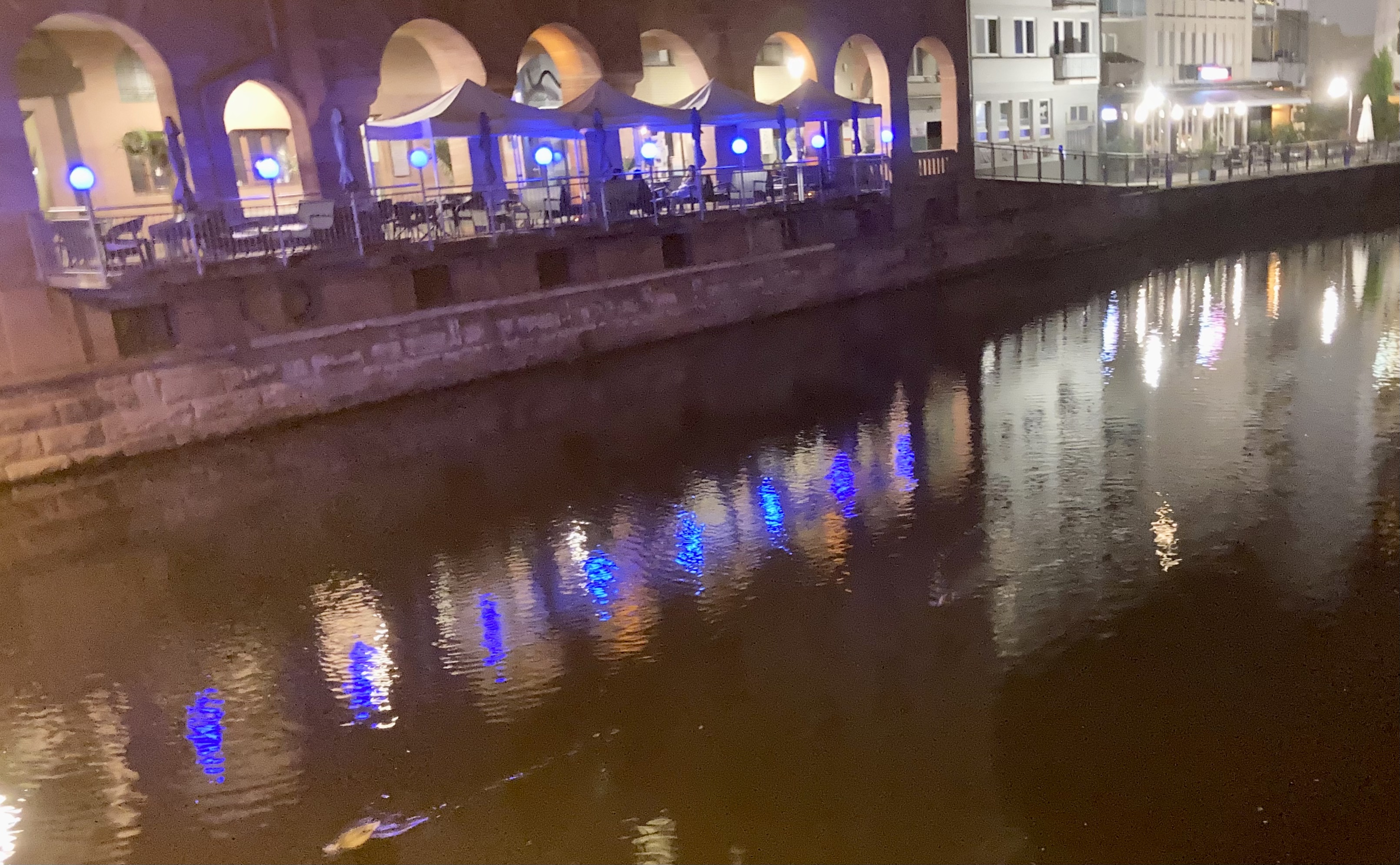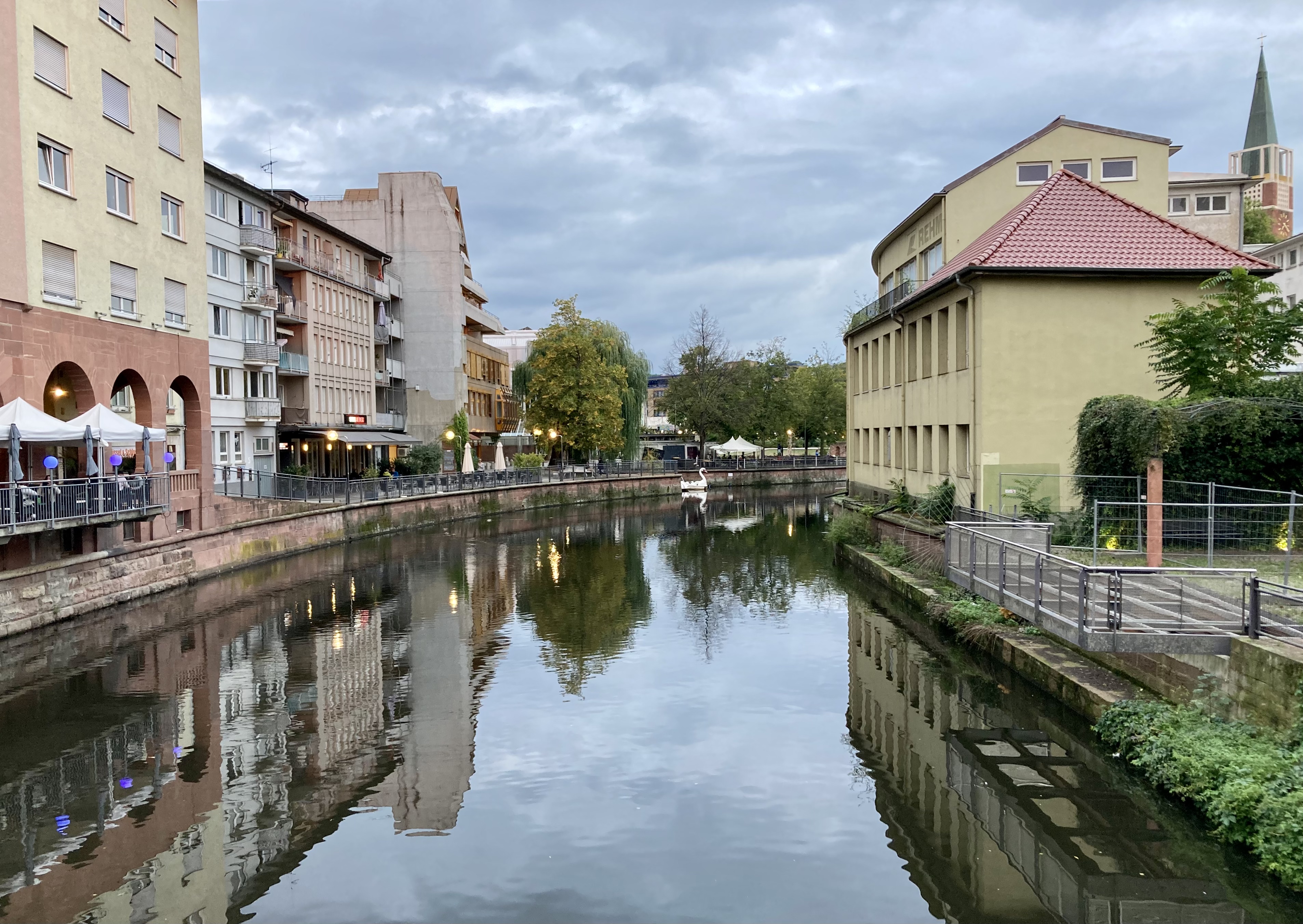 Besonders Bad Liebenzell beeindruckt mit viel Wasser: die Nagold, der Teich mit Riesenregenpfütze davor und die Trinkhalle.