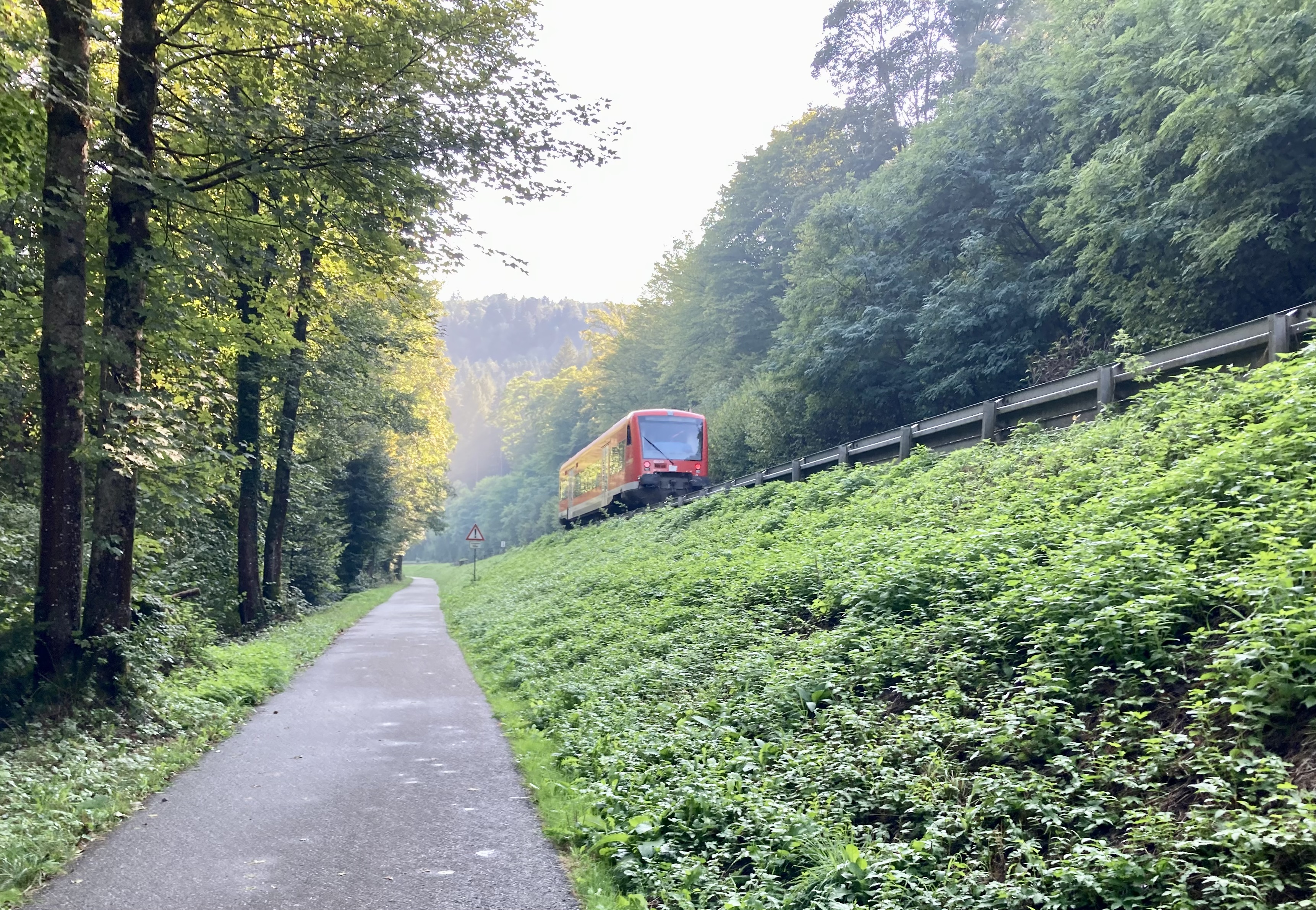 Ich laufe meist zwischen Nagold und Eisenbahnlinie.